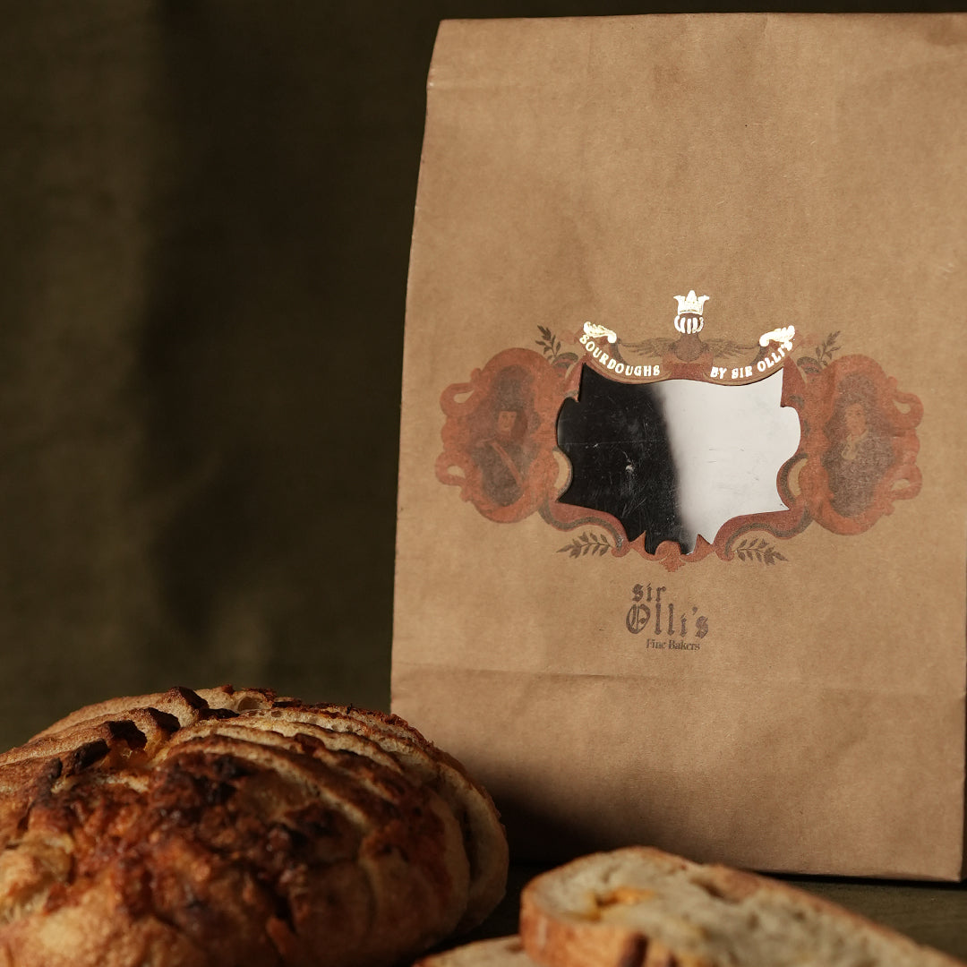 A savory delight, this sourdough features roasted garlic cloves, an orgy of herbs and aged cheddar, giving it a rich, aromatic depth. The garlic’s mellow sweetness pairs beautifully with the sharpness of cheddar, creating a loaf that’s perfect with soups, stews, or as a gourmet grilled cheese.